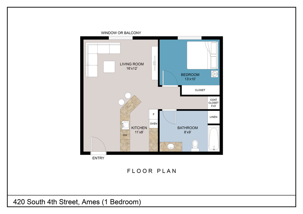 S 4th (1Bed/1Bath) - Floorplan 1 2 Bedrooms
