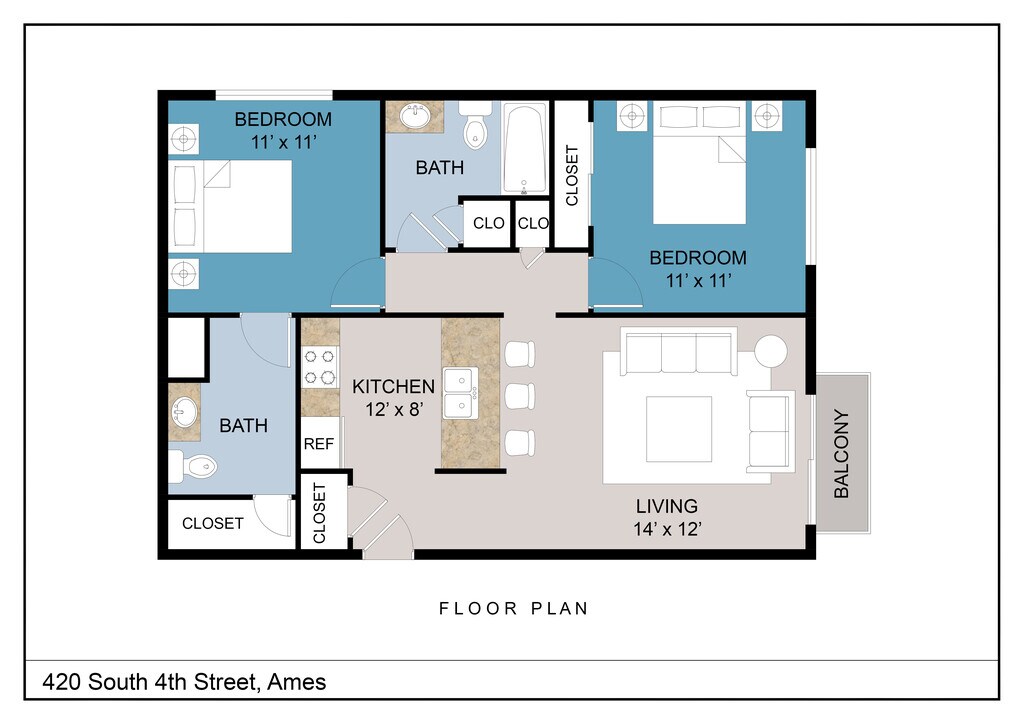 Apartment Model: S 4th (2Bed/2Bath)$9002 Bedroom, 2 Bath, 850-1050 sq ftUnavailable![]()