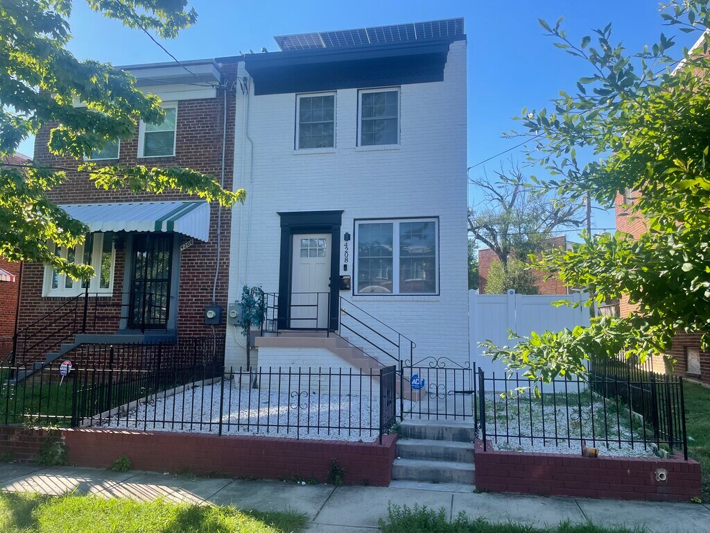 Grey space presents another exquisitely renovated semi-detached 3-level row house in burgeoning Ft. Dupont park. Not just another flip, with solar system. this custom-built home offers distinguishing characteristics not to be found elsewhere; new custom grid windows, Brand New EDPM Roof with 2" insulation, reinforced floor joists, custom doors/cabinets, resealed exterior walls, 48 gal electric water heater, and 2.5 ton HVAC system. The main level of this 3 bdrm, 2.5 bath home offers brightly lit living/dining space extending to a farmhouse-style kitchen with granite counter tops, Samsung appliances, and walkout to a charming rear patio, and large 2 car parking area. Upstairs boasts a spacious Master bdrm, 2nd bedroom -both with generous custom closet space- and fully renovated bathroom with quartz vanity countertops. Lower level walk-out basement is a perfect extra living space or playroom with an additional bedroom, full bath, and rarely seen extra-large egress windows for ample lighting. Convenient commuter routes, tree-lined streets, and plenty of walkable parks and rec centers provide the best of city living with a suburban feel. Come see all Harner Development and Ft Dupont park have to offer!this excludes utilities