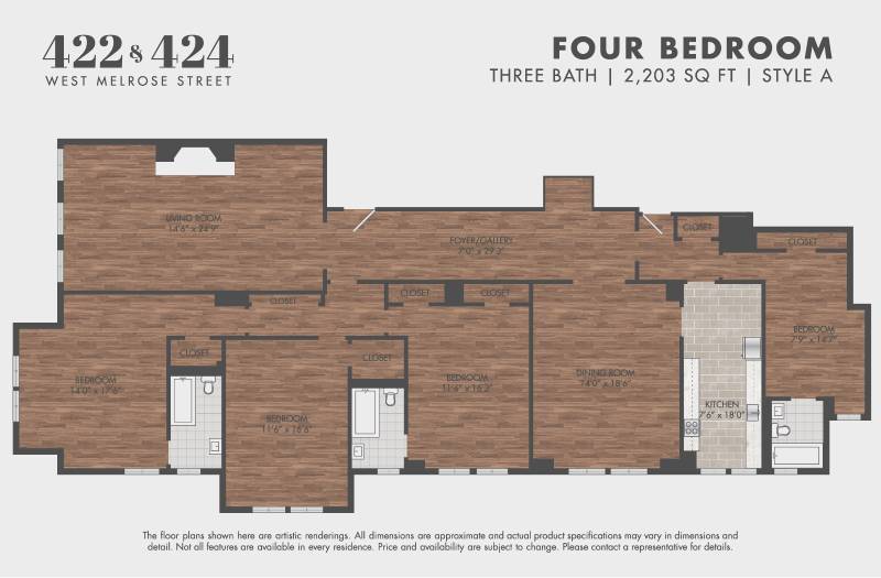 422-24 Melrose offers Studio to 4 Bedroom apartments starting from $1,323 and having 282–2,203 sq ft. Here is the current pricing and availability: