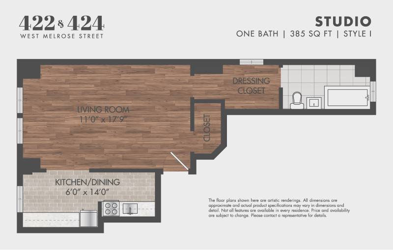 Studio, 1 Bath, 385 sq ftAvailable January 30, 2026Model Gallery