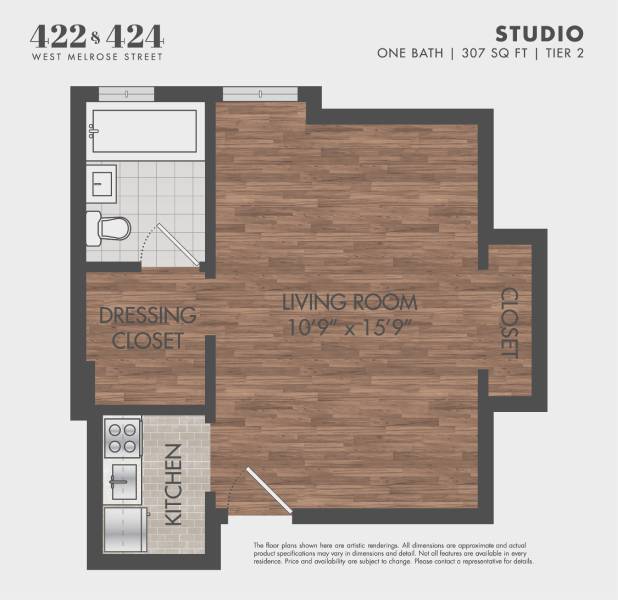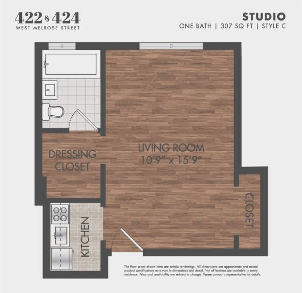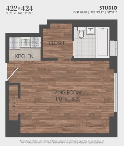 Studio, 1 Bath, 308 sq ftAvailable NowModel Gallery