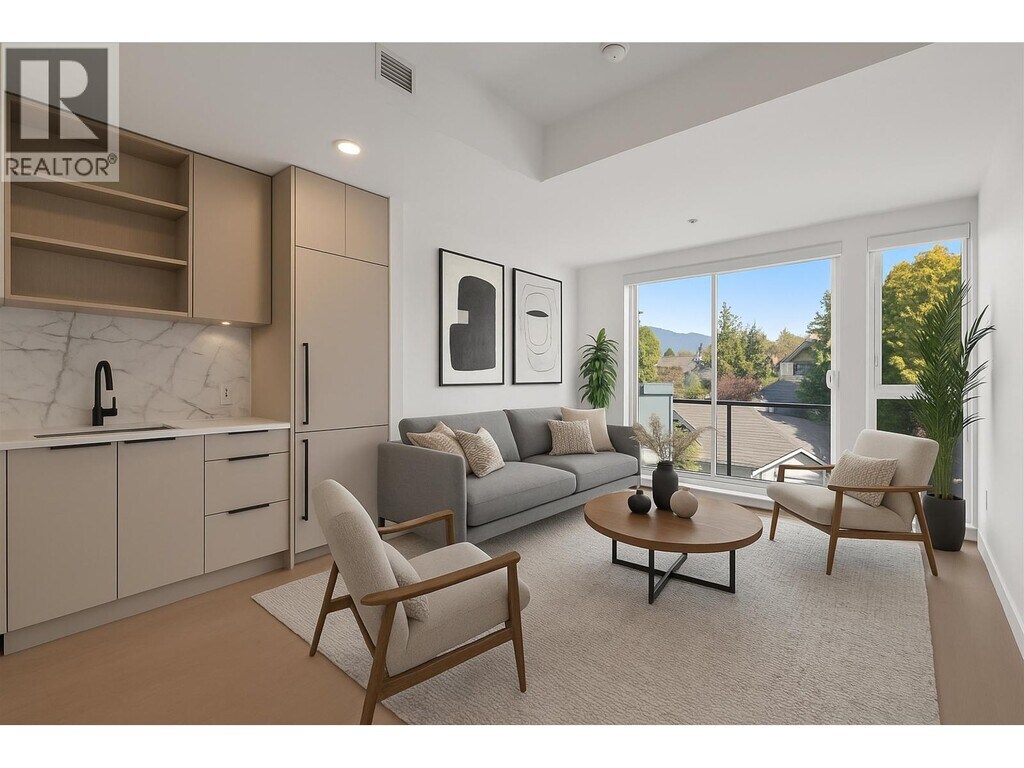 Experience elevated living in this sleek & contemporary 1-bedroom,1-bathroom suite located in the newly built INNOVA building-perfectly situated in the heart of Lower Lonsdale. Designed for comfort and style,this bright and airy unit offers a smart open layout,premium finishes,and views of the North Shore Mountains. Underground parking & storage are also included for your convenience. Features include expansive floor-to-ceiling windows for abundant natural light,modern hardwood flooring throughout,a gourmet kitchen with Fisher & Paykel appliances & quartz countertops & in-suite laundry. Enjoy top-notch amenities including a rooftop terrace with panoramic views,outdoor lounge,community garden & access to The Blok-a walkable lane with shops and cafes steps away. (id:52069) ID#: 1427782