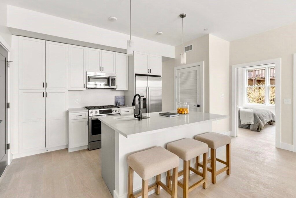 Introducing Eastie Grace, a stunning new boutique building located on the water in East Boston's amazing Eagle Hill neighborhood! Comprised of 16 luxury residences, originally developed as condominiums w/ elevator, roof deck, and garage parking. Featuring a modern open concept with hardwood floors, 10’ ceilings, central air, oversized windows and water views. High-end kitchens and baths w/ quartz counters, Bosch appliances, in-unit Electrolux laundry, and walk-in closets. Enjoy all this diverse neighborhood has to offer including quick access to public transportation, Logan Airport, Maverick Sq, Jeffries Point, several well-known and eclectic eateries like Rino's Place, Reelhouse, Santarpio's- parks, water ferry, grocery shopping, pharmacies, and more! Water/Sewer Included in monthly rent. Garage parking available @ $200 monthly. Pets allowed (max 2 per unit) @ $75 for dog, $35 for cat, monthly.