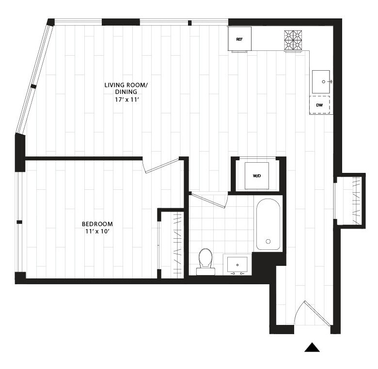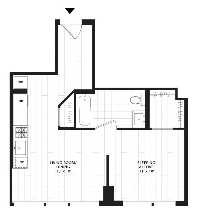 S02 - Floorplan 11 Apartment Unit: 1109Apartment Model: S02$2,600Studio, 1 Bath, 383 sq ftAvailable April 2, 2026Floorplan S04