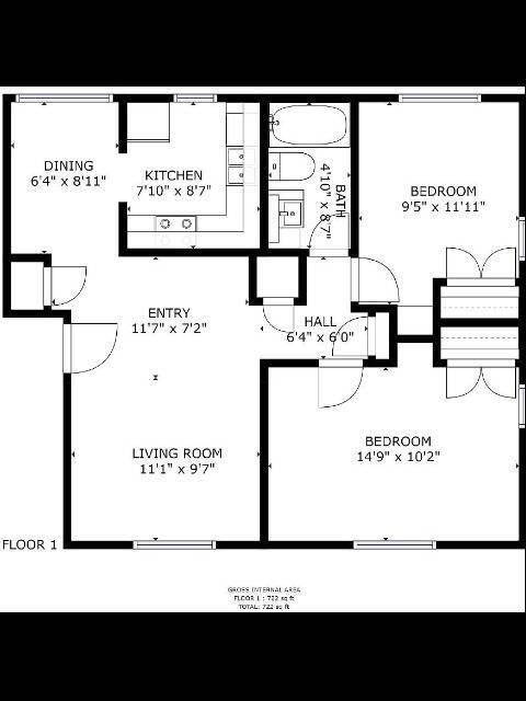 Apartment Model: 2 Bed 1 Bath2 Bedroom, 1 Bath, 722 sq ftUnavailable2 Bed 1 Bath - Floorplan 1