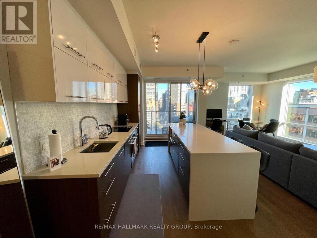 Welcome to Cathedral Hill! This luxurious and spacious 1-bedroom corner unit,approximately 798 square feet including the balcony,offers heated indoor parking and modern urban living at its best. The suite features hardwood floors throughout,a sleek kitchen with a large island and stainless steel appliances,and floor-to-ceiling windows that fill the space with natural light,creating an open and airy feel. The oversized balcony provides plenty of room for lounge seating and offers stunning views of the Ottawa River,city skyline,and Gatineau Hills.Cathedral Hill is a LEED-certified,environmentally friendly building with outstanding amenities including a party room with gas BBQ,fitness centre with sauna,yoga and exercise rooms,guest suite,concierge,pay-per-use electric vehicle charging stations,and 24-hour security. Perfectly located just steps from the LRT station and bike paths,commuting is simple and convenient no matter your destination. Available December 1,2025 . One heated indoor parking space and storage locker included. No pets please. (id:52069) ID#: 1588948