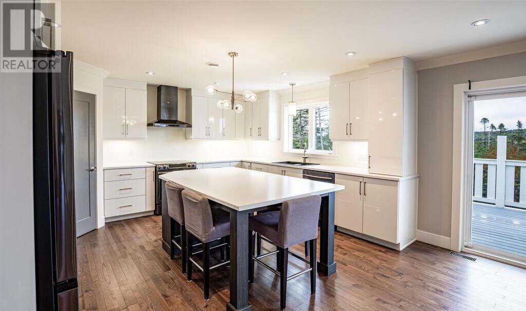 Welcome to this beautiful home in the beautiful town of Portugal Cove-St. Philip’s! Spacious 3 +1 bedroom,3.5-bathroom walk-out bungalow sits on a 1-acre lot at the end of a quiet cul-de-sac,offering privacy and modern living at its finest. Step inside to a bright and open-concept living space,featuring a sleek,modern kitchen with a large island,stainless steel appliances,and a walk-in pantry for ample storage. For warmth and air conditioning the comfort of this home is controlled by a central air to air Heat pump system. The oversized basement rec room is perfect for entertainment,while a spacious in-house storage/utility room provides plenty of extra space. A custom hardwood staircase leads to the basement,adding to the home’s quality craftsmanship. For vehicle and storage needs,the property offers two attached garages—one at the front and one at the rear. The front garage is heated with a mini-split system,while the basement garage provides additional storage and workspace. Enjoy outdoor living with a walk-out basement,rear patio,and a charming she-shed located underneath,perfect for a private retreat or additional storage. The covered front veranda adds to the home’s curb appeal,and the 12+ car parking ensures plenty of space for guests. This stunning home combines luxury,functionality,and energy efficiency in a highly sought-after location. (id:52069) ID#: 1571777