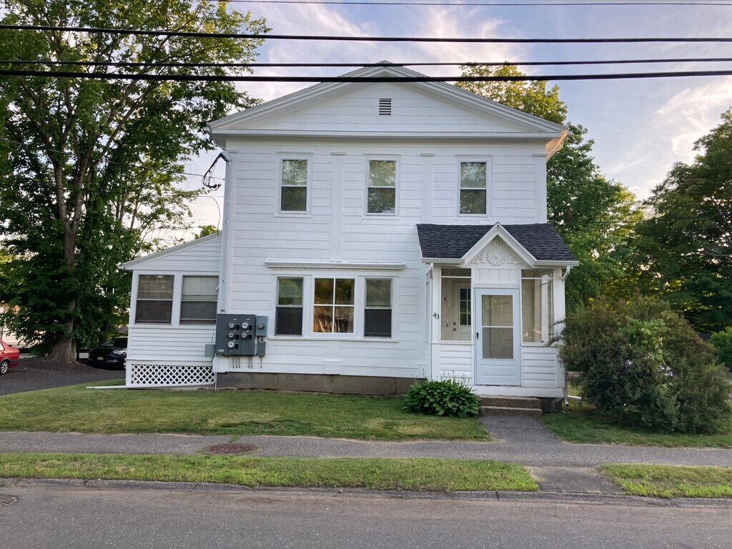 Get away from it all in downtown Belchertown! 43 Main Street is an historic no smoking building, on the Common in downtown Belchertown. Near the PVTA bus line 45 and perfect for a serious student or young professional. Section 8 welcome. Off street parking and on-site laundry room available for all tenants. Sorry no pets allowed. NO SMOKING BUILDING. Credit and background checks required. Apt E- $1,500- 2 BR (745 ft²) (2nd floor) Old school charm with modern conveniences. A remodeled and freshly painted, clean and bright, two bedroom apartment with wood floors and exposed 19th century ceiling beams throughout. One large bedroom and one small bedroom (also perfect for a study/office), one bathroom, kitchen, and very large living area. Has modern windows, energy efficient air conditioning and heat pump. On-site laundry room available for all tenants. $1,500/month, including water, sewer, and trash. Tenant pays for electric (heat pump and AC) and cable/internet. First month’s rent ($1,500), last month’s rent ($1,500) and security deposit ($1,500) required ($4,500 total). Sorry, no pets allowed. NO SMOKING BUILDING Apt. E- 43 Main Street, Belchertown, MA 01007 Not Available Apt C- $1,300- 1BR (464 ft²) (1st floor) A remodeled, clean and cheerful, one bedroom apartment with open floor plan. One bedroom, one bathroom, with kitchen opening into a bright and sunny living area. Has energy efficient air conditioning and heat pump. $1,300/month, including water, sewer, and trash. Tenant pays for electric (heat pump and AC) and cable/internet. First month’s rent ($1,300), last month’s rent ($1,300) and security deposit ($1,300) required ($3,900 total). Sorry, no pets allowed. NO SMOKING BUILDING Apt. C- 43 Main Street, Belchertown, MA 01007 Not Available