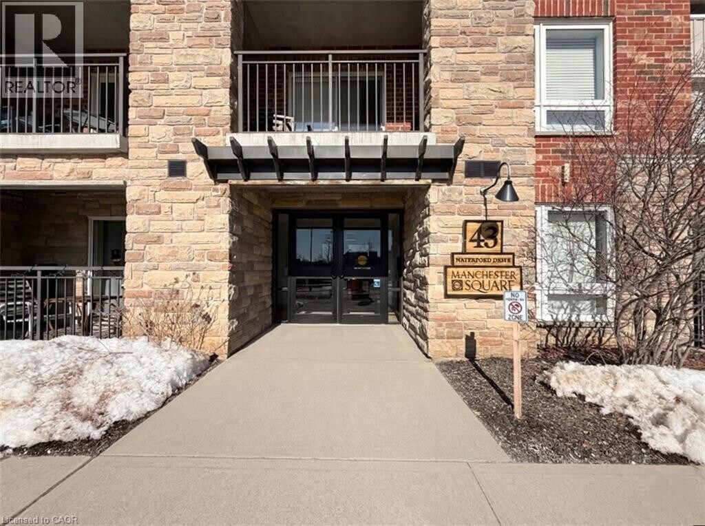 Welcome to 402-43 Waterford Drive. This bright and beautifully designed top floor 2 bedroom + den condo offers 852 square feet of thoughtfully laid-out living space. With an open-concept kitchen and living area,this unit is perfect for everyday living. The kitchen is equipped with brand new stainless steel appliances (2026),quartz countertops,and tile backsplash,offering a modern and practical space for everyday use. The den adds flexibility and can be used as a home office,study area,or additional storage space. A private balcony extends the living area providing a comfortable outdoor retreat and is the perfect spot for watching the sunset. Conveniently located with quick access to Highway 6 and the 401,this property is ideal for commuters seeking easy highway connectivity. This unit is a great opportunity for those looking for low-maintenance condo living in a well-connected location. (id:63800) ID#: 2218021