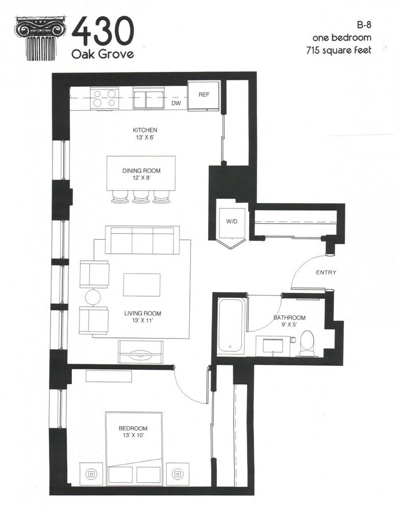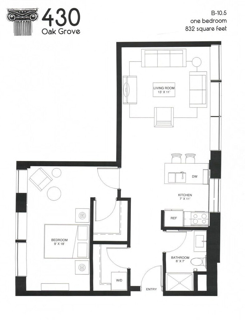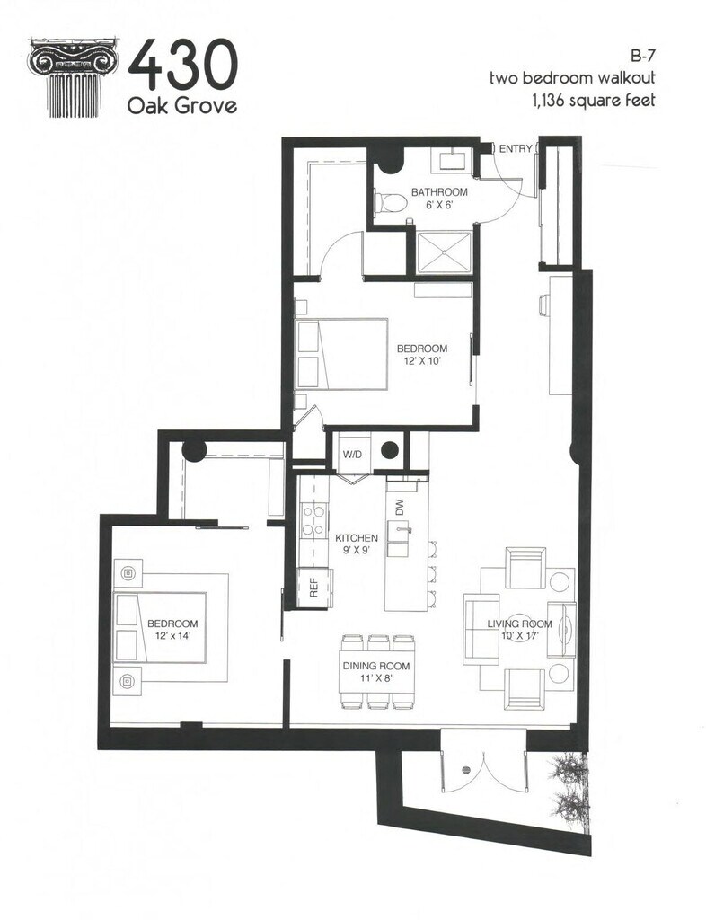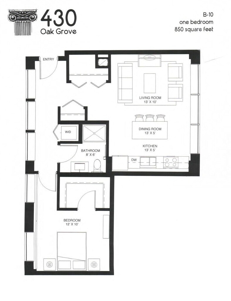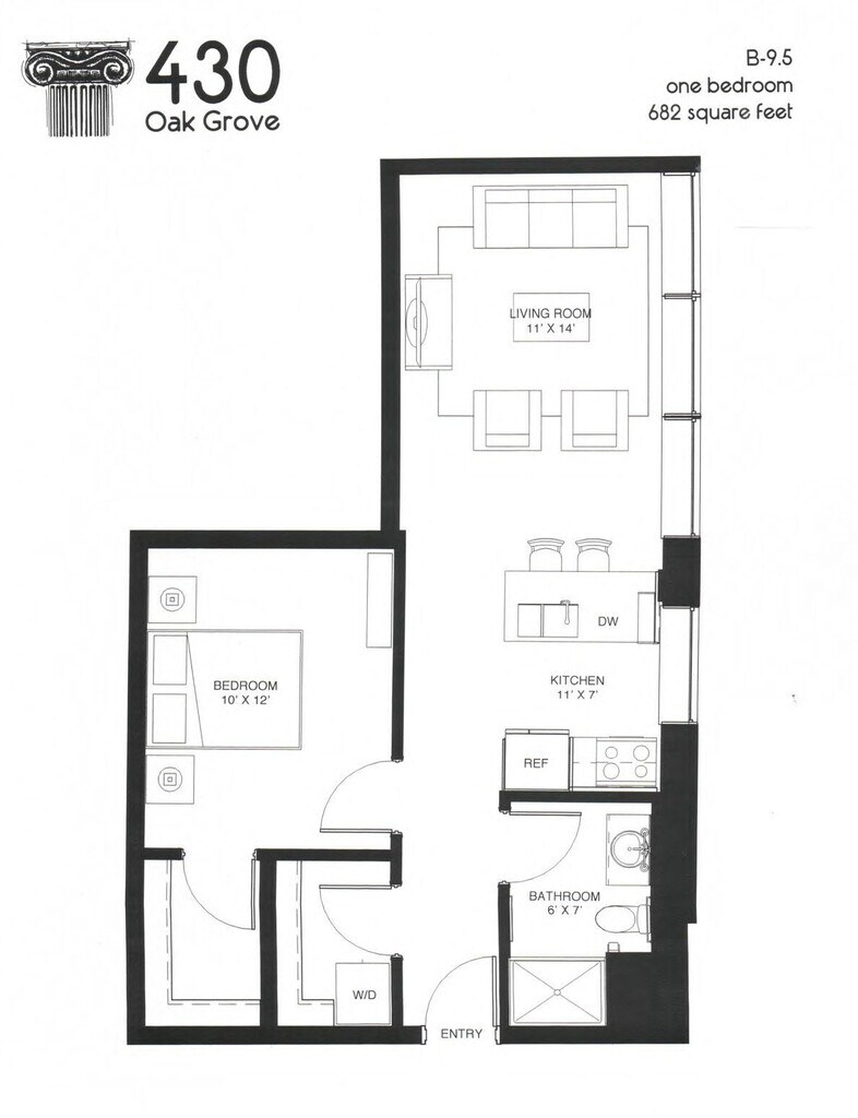 Studio to 2 Bedroom Apartments at 430 Oak Grove currently range from $1,323 to $2,003