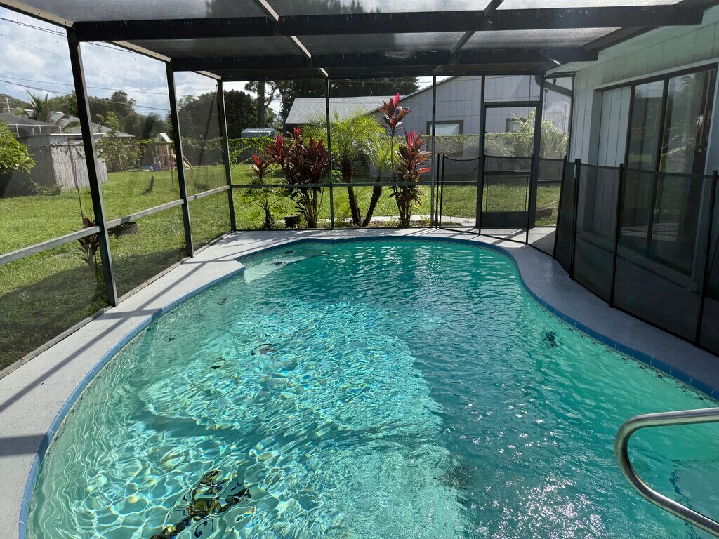 Where are you going to find a pool home at this price cozy 1300 ft.² 32 with a pool and enclosed one car garage close to turnpike and I 95. Upgraded kitchen with stainless steel appliances, new living room, flooring screen rear patio, and fenced in yard. 1st, last and security required to move in pool maintenance is included. Located in Port St. Lucie.