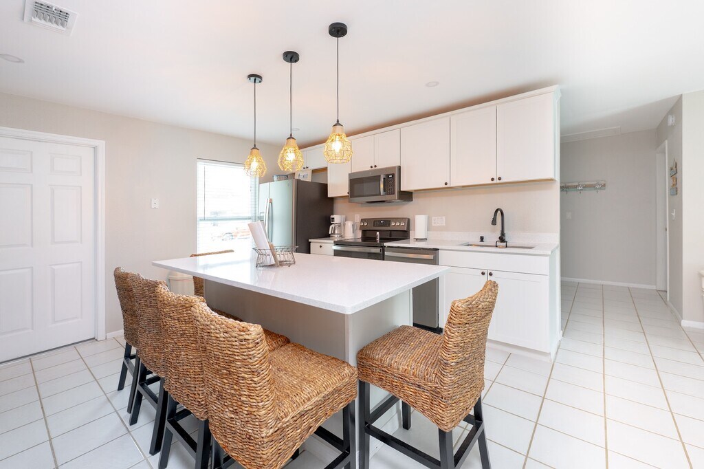 Newly remodeled pool home with 4 bedrooms with dedicated office space and 2 bathroom in a family oriented, strategically located neighborhood, right off I-75. PET friendly! Tastefully furnished with brand new kitchen appliances. 2 queen size beds and 2 twin size beds. 6 people max. Outdoor furniture and charcoal grill. Free parking in our 2 car garage. Fully fenced backyard.Ask about pet policies and fees. All utilities included! Sept 2025 rent US$3600, Oct 2025 US$3800, Nov-December 2025: US$ 4,000, January-Feb 2026 rent US$ 4,250. MARCH-APRIL 2026 BOOKED.