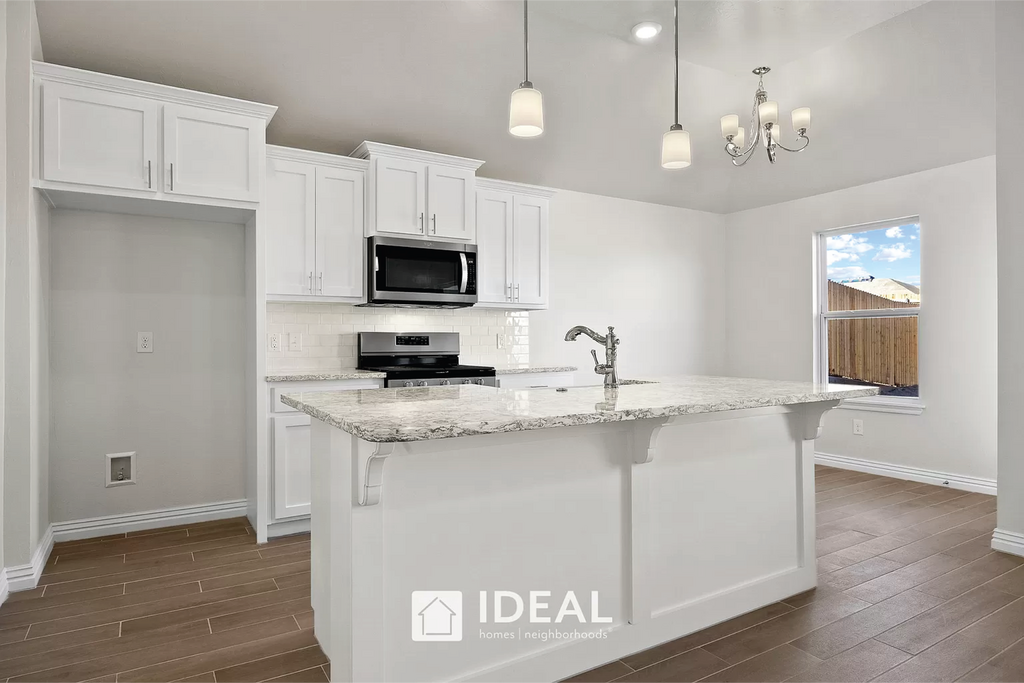 Four-year-old house with 10 foot ceilings in the living room, an open floorplan with lots of light and carpet only in the bedrooms. Very modern with white cabinets, farmhouse kitchen sink and quartz countertops. In a safe and quiet neighborhood that is on the bus line and within walking distance to Walmart and Sonic. Has large, private backyard with tall fence and covered back porch. Two car garage with extra room for storage. Indoor laundry with brand new washing machine. The home boasts an energy-efficient HERS score of 67, guaranteeing you low heating & cooling costs all year long. House will be professionally cleaned before move in. Would consider a longer lease term if desired.