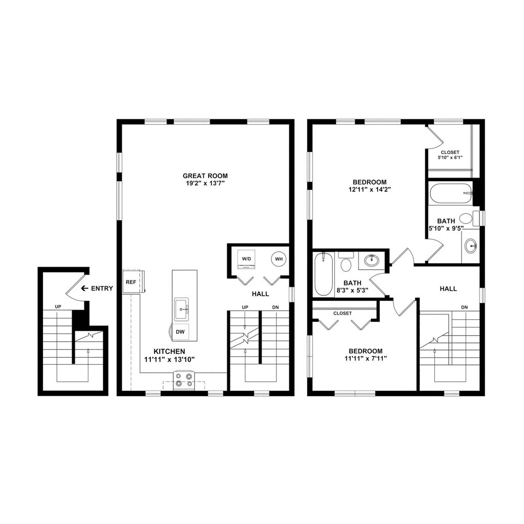 Two Bedroom - Floorplan 2 Apartment Unit: MApartment Model: Two Bedroom$2,0502 Bedroom, 2 Bath, 1050 sq ftAvailable November 21, 2025