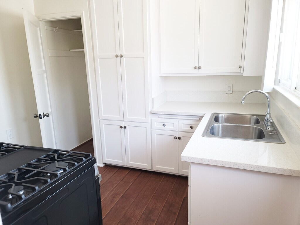This is a great El Segundo property with many updates. The updates include new cabinet faces, drawers, and a water heater. In addition, there is new ceramic flooring in the bathroom and a newer bathroom cabinet & fixtures. Moreover, there is a newer kitchen sink, kitchen countertop & fixtures. A brand new stove was just added! Also, there is a used refrigerator. This unit also boasts a newer laminate floor in the bedroom and living room, and vinyl flooring in the kitchen. There are double pane windows and solid core doors and also central heating. There is lots of cabinet space and storage. There is also a nice walk-in closet in the bedroom and a walk-in pantry in the kitchen. The exterior was recently painted and looks amazing. We have two laundry facilities onsite. The unit has one carport space and additional storage space recently built in the carport. This slice of paradise is located near beautiful parks and beaches. A consistent Ocean breeze keeps the temperature at roughly 72 degrees year-round. There is no need for air conditioning, except maybe 2 weeks out of the year. The ocean is one mile and 275 yards from the property. There is a nice park to work out across the street. I have a running section mapped out across the street with half-mile markers. Also, it has close access to the 105 and 405 freeways and LAX across the street. We have excellent schools and a great community. There are lots of great restaurants downtown and also several good bars. This town is "Mayberry by the Sea." El Segundo is like a piece of the Midwest dropped in the middle of Los Angeles. Furthermore, we have a great police force and great firemen! I have a video tour available upon request. This is a one-year lease, which then moves by default to month to month. The owner pays for water & trash only. There are two laundries on site which are free most of the time. This unit comes with one carport space and bonus storage available. We do not allow pets.