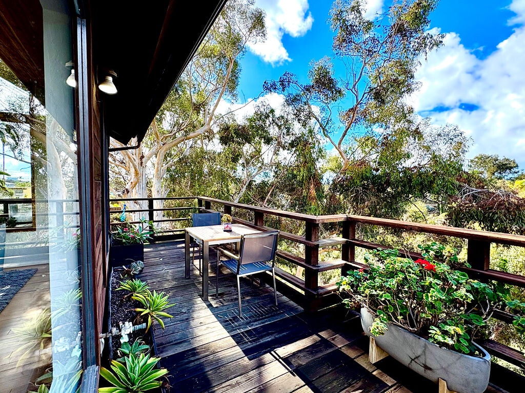 Peaceful Canyon Living 3 Bedrooms | 3.5 Bathrooms | 2100 Sq. Ft. | Fully Furnished | Architect-Designed Home (Available April 1, 2026) Discover a rare blend of privacy, design, and convenience in this stunning Furnished University Heights canyon retreat. Nestled near the end of a quiet cul-de-sac, this architect-designed home was thoughtfully created to capture panoramic canyon views and the serenity of nature—all while being moments from the best of urban San Diego living. Features & Highlights Light-filled interiors with vaulted ceilings and open-concept design Updated kitchen and recently remodeled master suite and bathrooms Multiple decks offering treetop and canyon vistas and private BBQ area Gas heating and refreshing ocean breezes (A/C rarely needed) One-car garage with 220V outlet for EV charging, parking in driveway Two shared washers and dryers (shared with separate front house) Fully furnished with high design furniture, original art, wool Berber carpet, hard wood floors Location & Lifestyle Short walk to Park Blvd restaurants, bars, and entertainment Walking distance to elementary school 5 minutes to Trader Joe’s, Ralphs, Whole Foods, Fashion Valley, UCSD, and Scripps Medical Centers 10-15 minutes to the airport, downtown, Ocean Beach, and the San Diego Zoo Canyon Living at Its Best Set deep within a peaceful canyon, this home offers true tree-top living with abundant wildlife—including great horned owls, native foxes, songbirds, squirrels, and raccoons. The tranquil setting ensures exceptional privacy and a unique connection to nature rarely found this close to the city. A Note of History Singer-songwriter Jewel wrote and recorded parts of her debut album “Pieces of You” while living in this very home—adding a touch of artistic legacy to its charm.