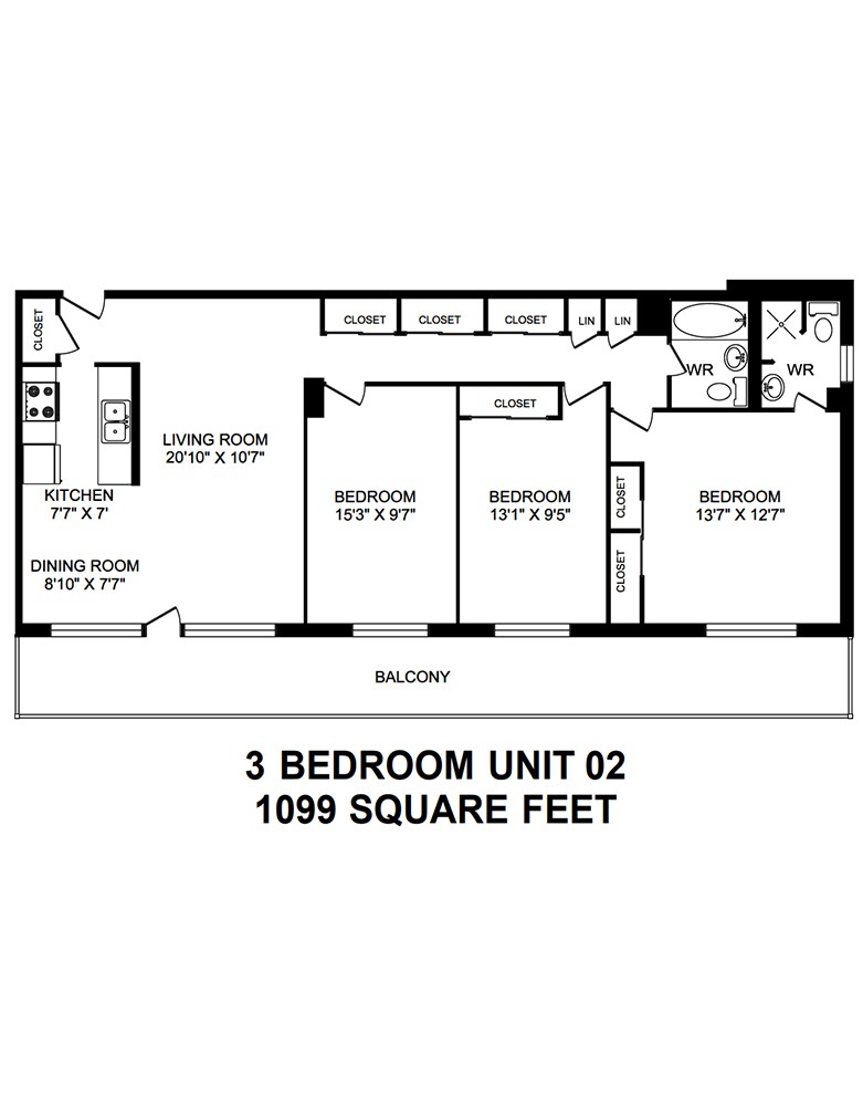 Apartment Model: 3 Bedroom3 Bedroom, 2 Bath, 1099 sq ftAvailable Now3 Bedroom - Floorplan 1