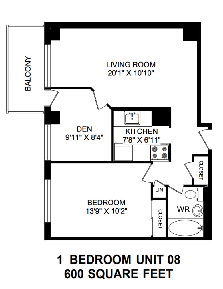 1 Bed, 1 Bath, 600 sq ftAvailability Details