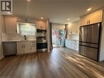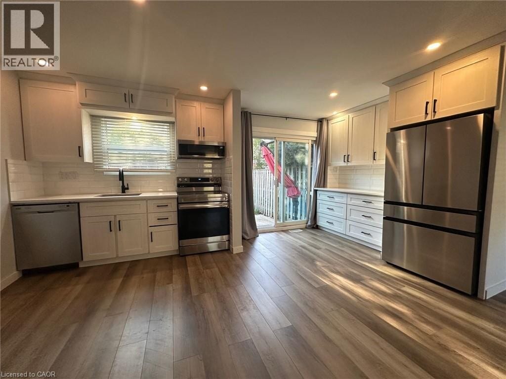 Welcome to this Charming and move-in-ready 3-bedroom,2-bathroom condo townhouse located in a quiet,family-friendly complex. The home features a bright open-concept main floor with a recently renovated modern kitchen showcasing stainless steel appliances,updated cabinetry,and sleek finishes. The spacious living and dining area offers direct access through sliding doors to a fully fenced private backyard—perfect for relaxing or entertaining. Upgrades include new main floor flooring (2018),a fully renovated kitchen,renovated 4-piece bath,and a newer furnace (2020). The fully finished basement adds even more living space,complete with a recreation room and a convenient 3-piece bathroom. Ideally situated within walking distance to schools,parks,trails,and local amenities,and just 5 minutes to Highway 401,this home combines comfort,style,and convenience—perfect for families or commuters alike (id:52069) ID#: 1564059