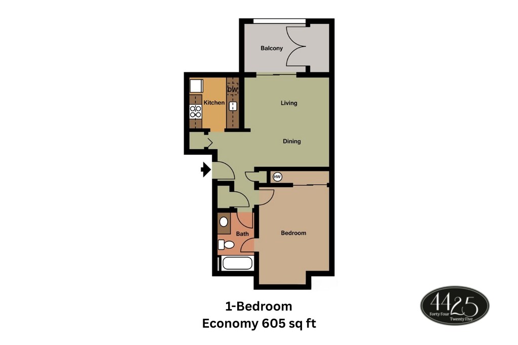 1 Bedroom Economy B - Floorplan 6 Apartment Unit: 176Apartment Model: 1 Bedroom Economy B$1,5501 Bedroom, 1 Bath, 605 sq ftAvailable Now1 Bedroom Standard A