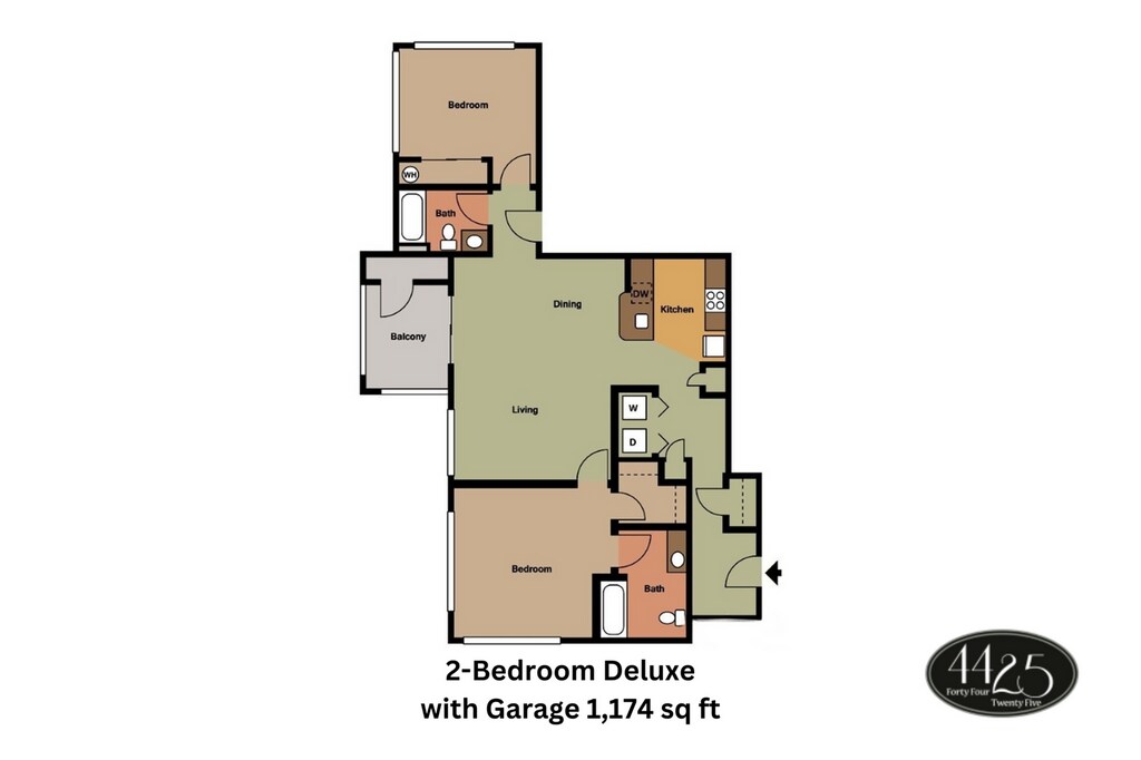 Apartment Model: 2 Bedroom 2 Bath Deluxe w/Garage I$2,2202 Bedroom, 2 Bath, 1174 sq ftAvailable Now![]()