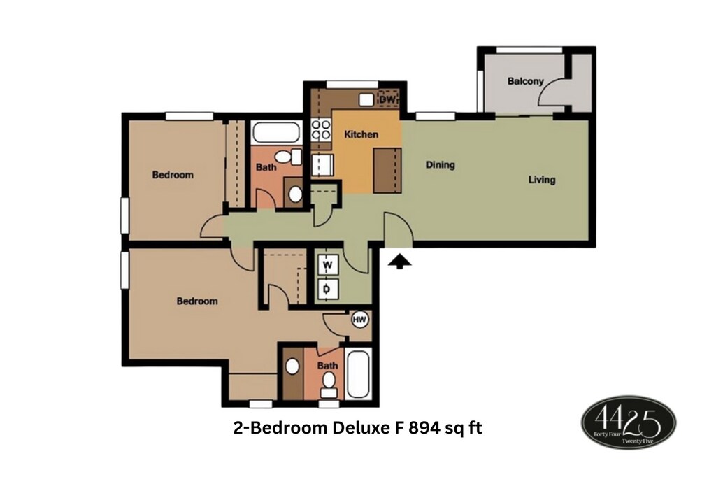 2 Bedroom 2 Bath Deluxe w/Garage I - Floorplan 4 ![]()