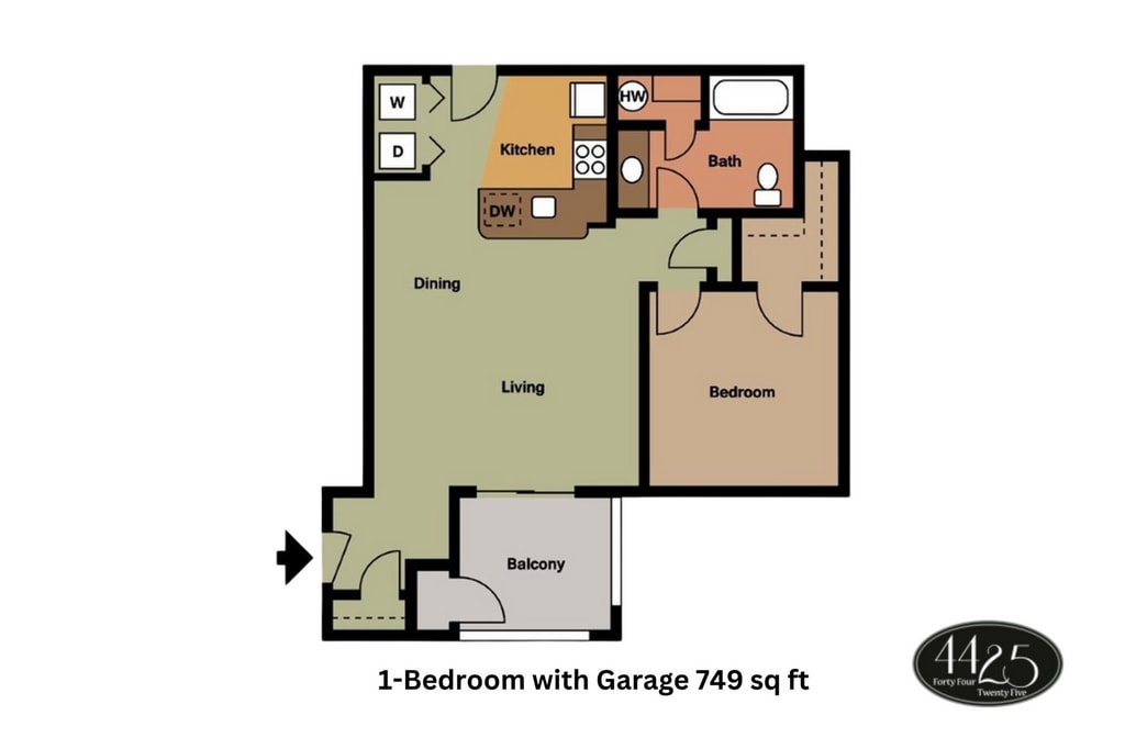 1 Bedroom w/Garage D - Floorplan 5 ![]()