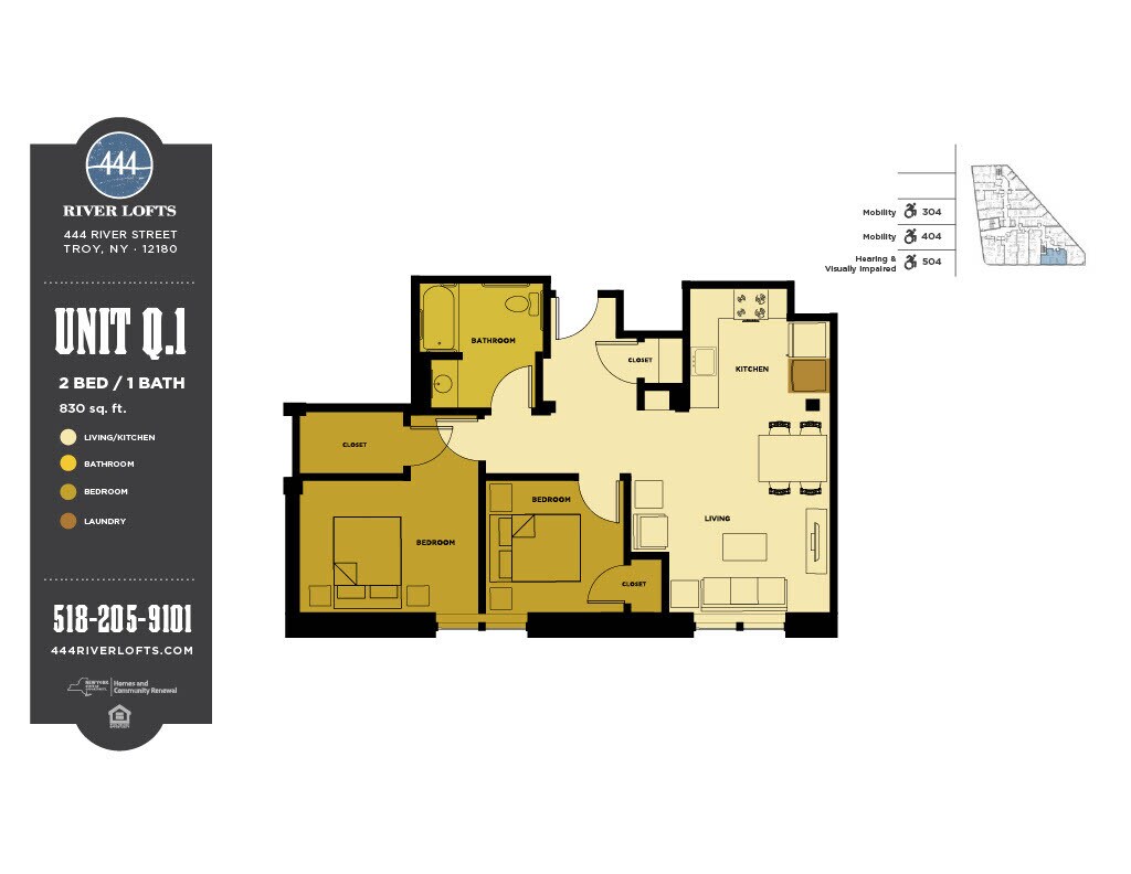 2 Beds, 1 Bath, 830-985 sq ftModel Gallery