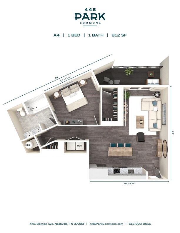 Step into unprecedented comfort and convenience, meticulously designed to elevate your living experience at every turn. 445 Park Commons offers a comfortable respite for residents with a full amenity suite, including a saltwater pool, exclusive gym, dog park, beautiful outdoor dining areas, and much more. 445 Park Commons is nestled amidst GEODIS Park in Nashville’s Historic Fairgrounds. With convenient accessibility to Downtown Nashville and public transportation options, you’re right in the middle of the action and have access to the best Nashville has to offer.
