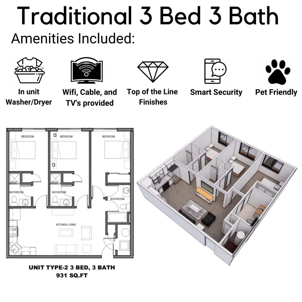 Apartment Model: Standard 3 Bedroom$2,3853 Bedroom, 3 Bath, 931 sq ftAvailable NowFloorplansPhotosStandard 3 Bedroom - Image 1 Standard 3 Bedroom - Image 2 Standard 3 Bedroom - Image 3 Standard 3 Bedroom - Image 4 Standard 3 Bedroom - Image 5 Standard 3 Bedroom - Image 6 Standard 3 Bedroom - Image 7 Standard 3 Bedroom - Image 8 Standard 3 Bedroom - Image 9 Standard 3 Bedroom - Image 10 Standard 3 Bedroom - Floorplan 11 Standard 3 Bedroom - Floorplan 12 Apartment Unit: Standard 3 BedroomApartment Model: Standard 3 Bedroom$2,3853 Bedroom, 3 Bath, 931 sq ftAvailable NowUnit: Standard 3 Bedroom - Image 1 Unit: Standard 3 Bedroom - Image 2 Unit: Standard 3 Bedroom - Image 3 Unit: Standard 3 Bedroom - Image 4 Unit: Standard 3 Bedroom - Image 5 Unit: Standard 3 Bedroom - Image 6 Unit: Standard 3 Bedroom - Image 7 Unit: Standard 3 Bedroom - Image 8 Unit: Standard 3 Bedroom - Image 9 Unit: Standard 3 Bedroom - Image 10 Large 3 Bedroom