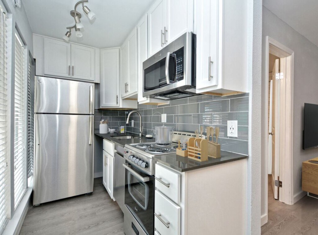 45 Flats has fully remodeled apartments featuring hardwood floors, new modern cabinetry, quartz countertops, stainless steel appliances, ceiling fans and central A/C. We are a pet-friendly community with NO breed or weight restrictions. Located in the heart of the historic and beautiful Hyde Park neighborhood, 45 Flats is a short drive or bike ride into Downtown ATX and UT main campus. Walk to a wide variety of neighborhood eateries, bars, and cafes including Antonelli’s, Hyde Park Bar & Grill, Mother’s Café, Quack Café, Maude’s, just to name a few. 45 Flats is a quick drive to endless restaurants, bars, cafes and other local establishments on Guadalupe, Lamar, and Burnet. The community is also adjacent to a variety of public transportation options on Guadalupe and 45th.