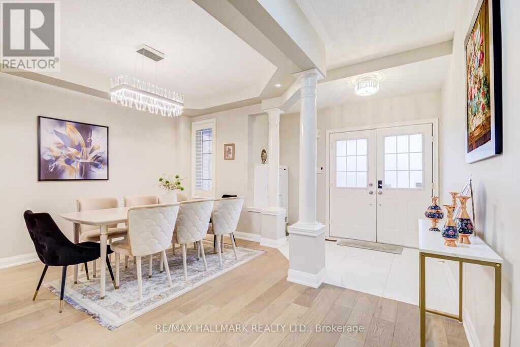 For Lease - Upper Unit - 45 Oland Drive,Vaughan (Vellore Village)3 Bed - 3 Bath - 2,300+ Sq Ft - 4-Car Parking. Welcome to this stunning,extensively upgraded executive home nestled on a quiet,family-friendly street in the heart of Vellore Village. Over 2,300 sq ft of elegant living space features soaring 9-ft ceilings,new hardwood floors,a redesigned staircase with wrought iron pickets,pot lights,and California shutters throughout.The chef-inspired kitchen shines with white shaker cabinetry,quartz countertops,stainless steel appliances,and a grey subway tile backsplash. It flows effortlessly into the sun-filled breakfast area and the showstopping family room - where sky-high ceilings and a classic gas fireplace create a space that is both grand and welcoming. Sliding doors lead to a private interlocking stone patio and a beautifully landscaped backyard,yours to enjoy as the primary outdoor retreat.The formal dining room impresses with architectural columns and a dazzling chandelier. Three generous bedrooms include a serene primary suite,while three bathrooms feature updated quartz vanities. A dedicated main-floor laundry room with full-sized LG front-load washer and dryer adds everyday ease. Low-traffic street means kids can play safely outside - ideal for young families. The home is move-in ready and meticulously maintained,offering the rare combination of space,upgrades,and location that is nearly impossible to find at this level in Vaughan. Just a 2-minute walk to Vellore Woods Public School,groceries,restaurants,gyms,Vaughan Mills Mall,Cortellucci Hospital,and Hwy 400 .Tenant responsible for 70% of utilities and lawn maintenance. Includes double car garage + 2 driveway spaces (4 cars total) and primary use of the backyard. (id:52069) ID#: 1918306