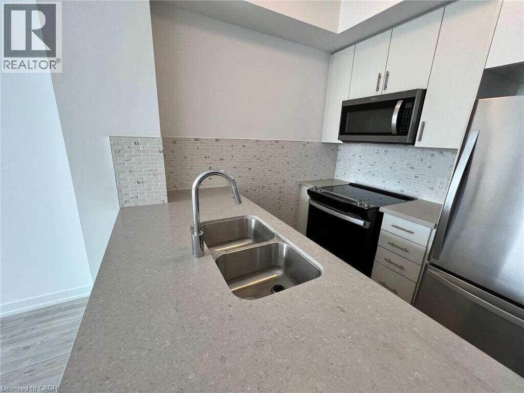 WELCOME TO TREND! A New Condominium built by New Horizon in Waterdown. This bright west facing spacious unit is a 1 bedroom + den. Suitable for anyone who needs a home office or just some extra living space. Fantastic galley kitchen with a large breakfast bar and a walk-out to your private balcony. This unit features an open concept layout with many upgrades including Shaw luxury vinyl flooring,quartz countertops,porcelain floor to wall tiles in the bathroom with rain head shower faucet,upgraded stainless kitchen appliance package,upgraded large washer and dryer. The spacious primary bedroom boasts a walk in closet and floor to ceiling windows. One underground parking spot with a locker on the same floor as the unit are also added features. Amenities include fitness room,party room,roof top patio and a bike room. (id:52069) ID#: 1936273