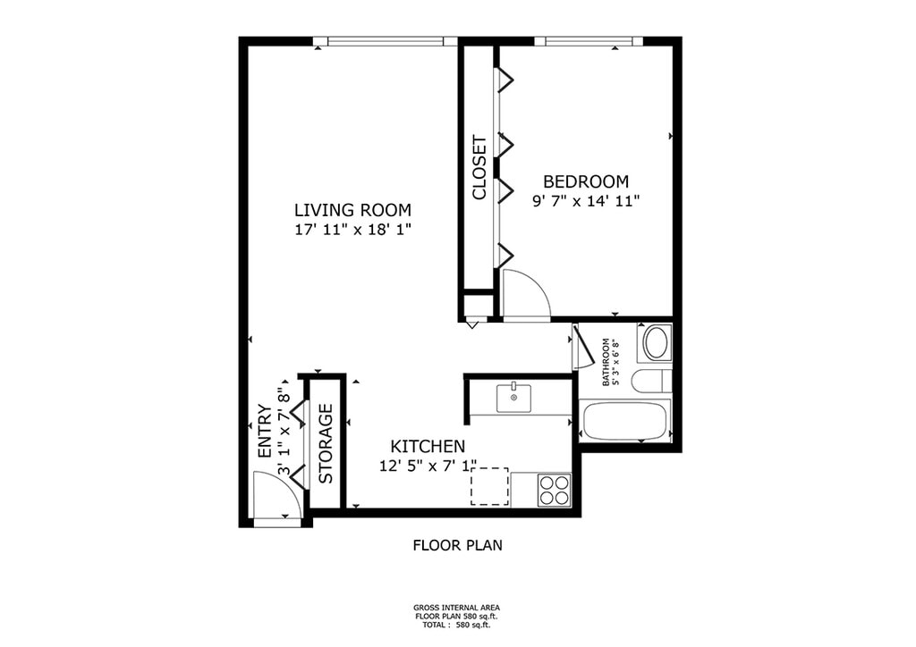 1 Bed, 1 Bath, 580-625 sq ftAvailable May 1Model Gallery