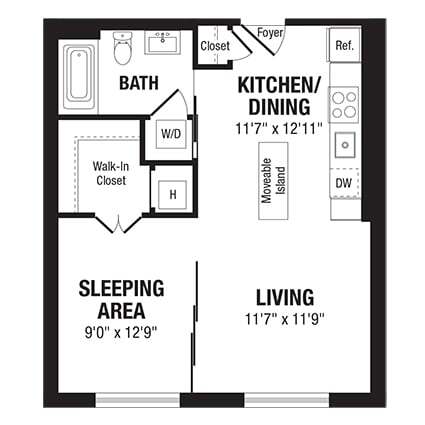 Studio, 1 Bath, 554 sq ftLargest StudioThis is the largest Studio at this PropertyModel Gallery