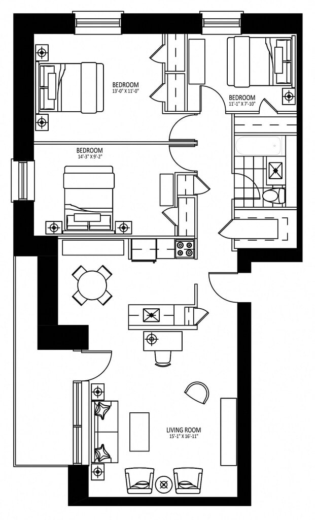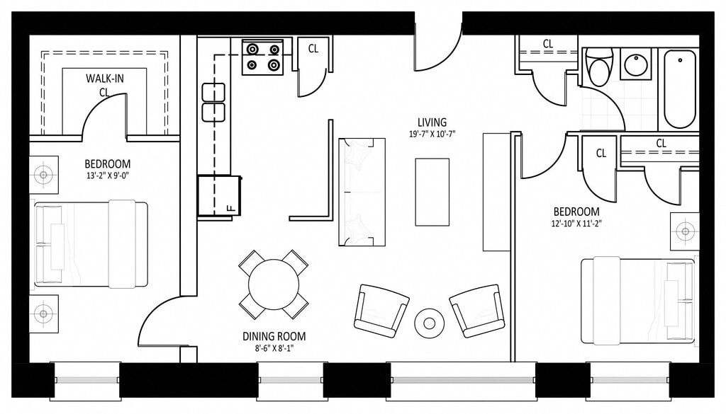 2 Beds, 1 Bath, 995 sq ftAvailable NowLargest 2 BedroomThis is the largest 2 Bedroom at this PropertyModel Gallery