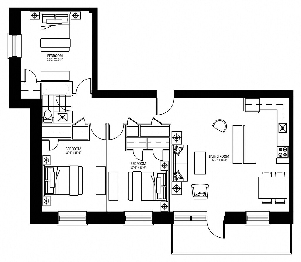 3 Beds, 1 Bath, 1215 sq ftLargest 3 BedroomThis is the largest 3 Bedroom at this PropertyModel Gallery