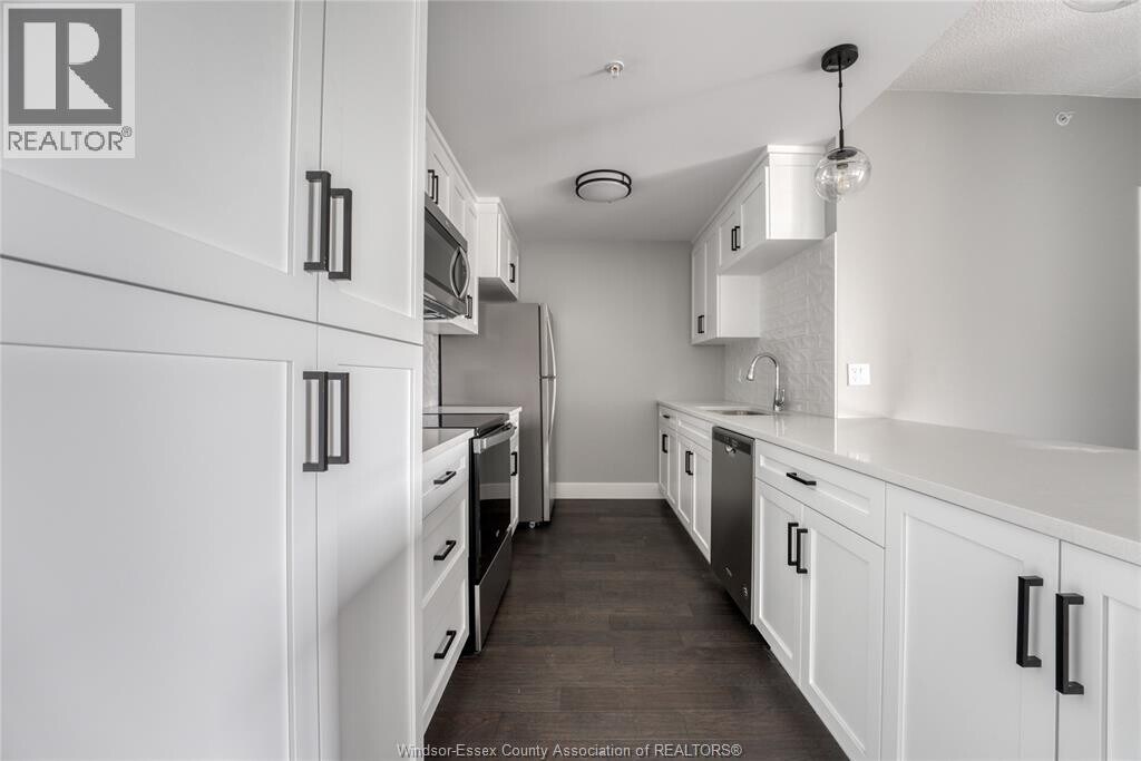 Welcome to this beautifully appointed top-floor suite in The Crossings at Heritage,a modern concrete building built in 2021. This well-designed unit features 2 spacious bedrooms and 2 full bathrooms,including a private ensuite off the primary bedroom,offering both comfort and functionality. Showcasing quality finishes throughout,the suite offers hardwood and ceramic flooring,completely carpet-free,for a clean,contemporary look. The kitchen is equipped with soft-close cabinetry,stainless steel appliances and ample storage. The open-concept layout provides a bright and inviting living space,complemented by a private,glass-enclosed balcony—perfect for enjoying some fresh air in your own sheltered outdoor space. Additional highlights include in-suite laundry,a convenient storage locker located on the same floor,and water included in the lease price. This secure,well-maintained building offers peace of mind and pride of residence. Ideally located close to the Shoppes at Heritage,with quick access to Highway 401,the E.C. Row Expressway,and Highway 3. Also just minutes from St. Clair College and Windsor-Detroit border crossings,making it an excellent choice for commuters and professionals alike. A fantastic opportunity to lease a newer,low-maintenance suite in a highly convenient and sought-after location. (id:63800) ID#: 2140997