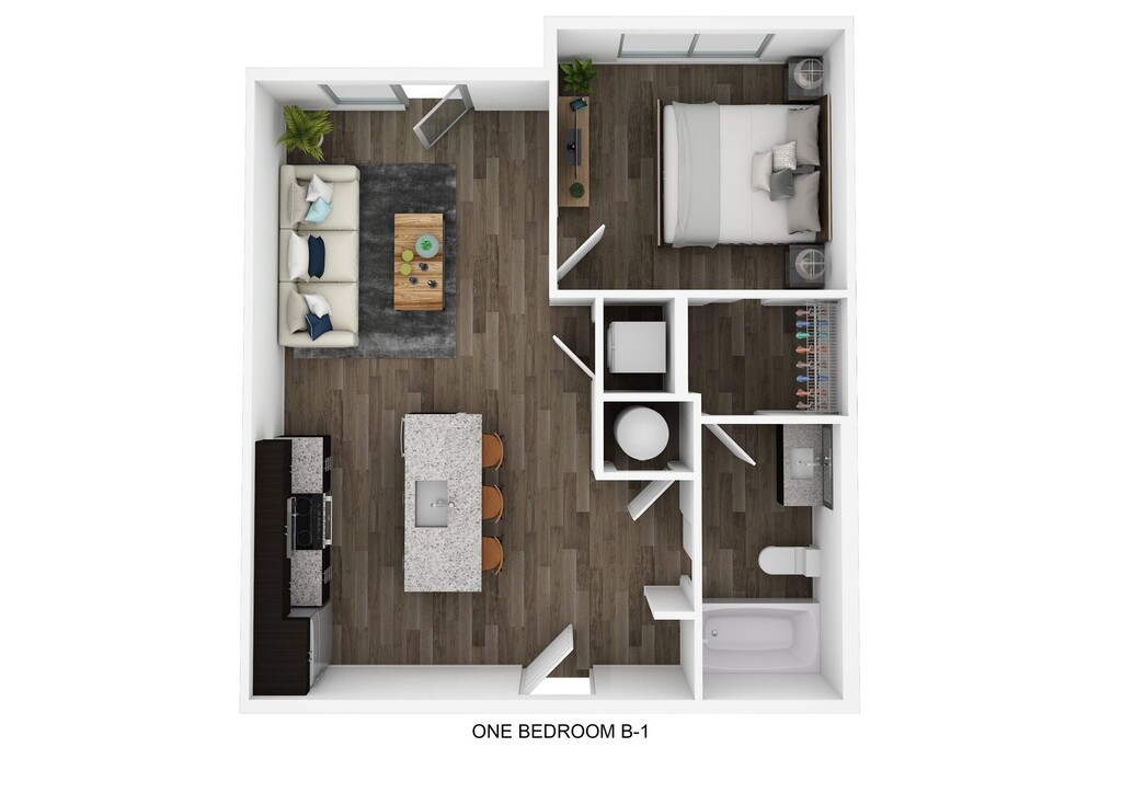 1 Bed, 1 Bath, 555 sq ftModel Gallery