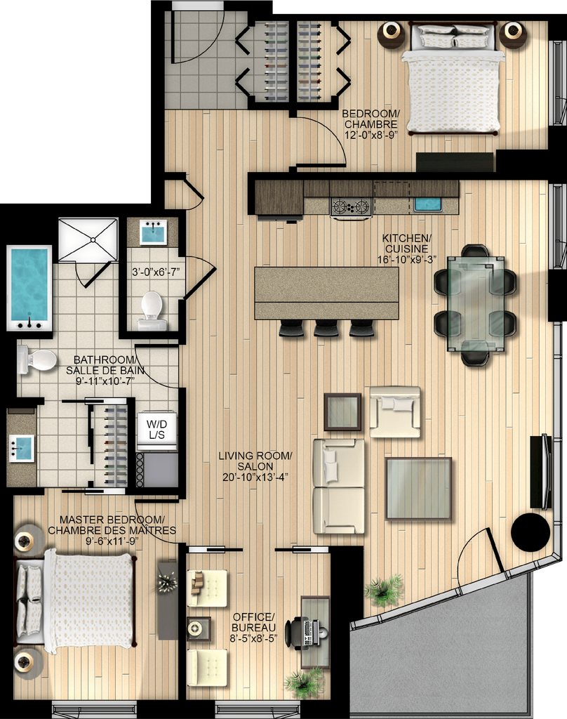 3 bedrooms - Floorplan 1