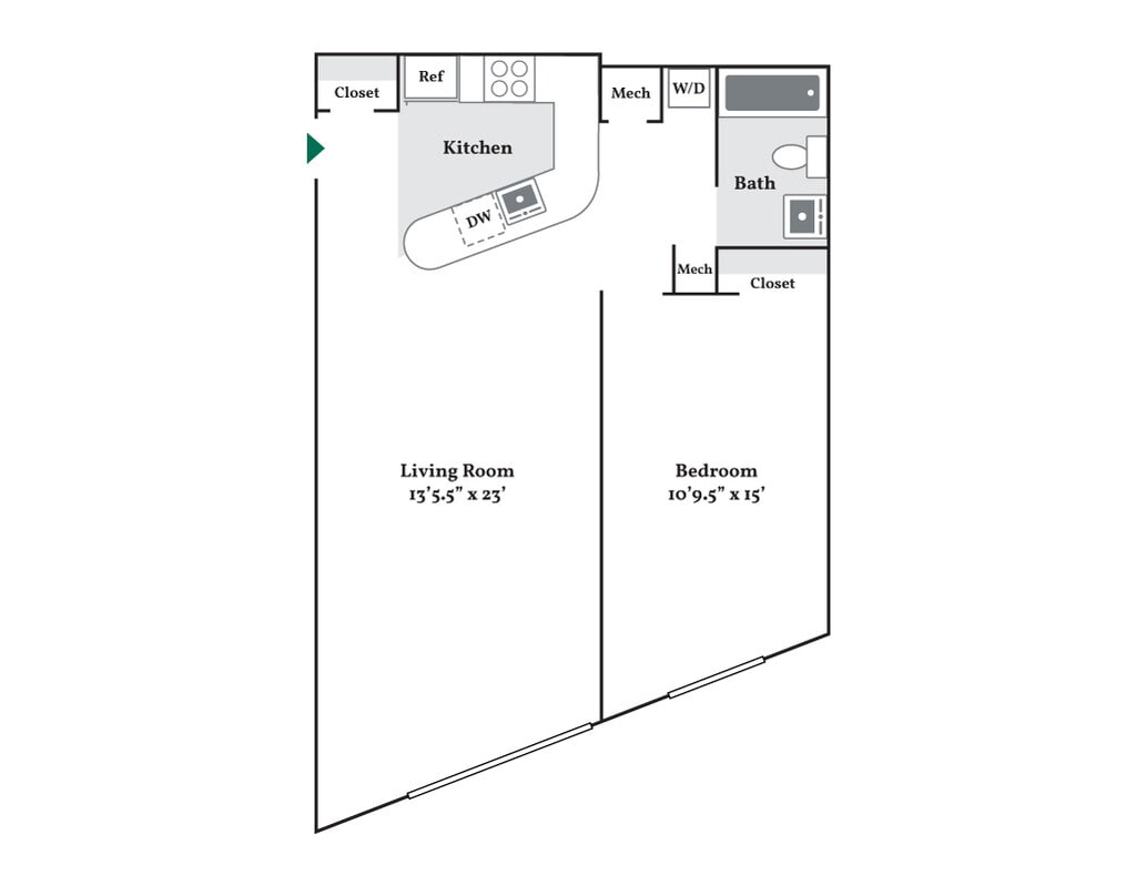 One Bedroom Small - Floorplan 2 One Bedroom Medium