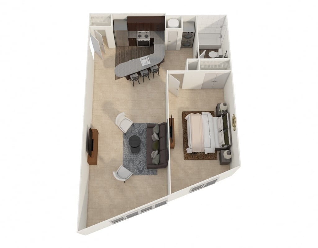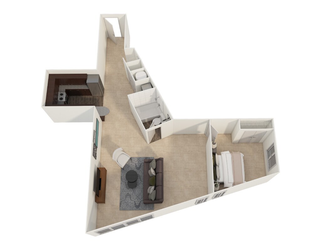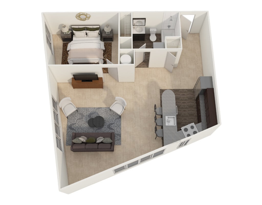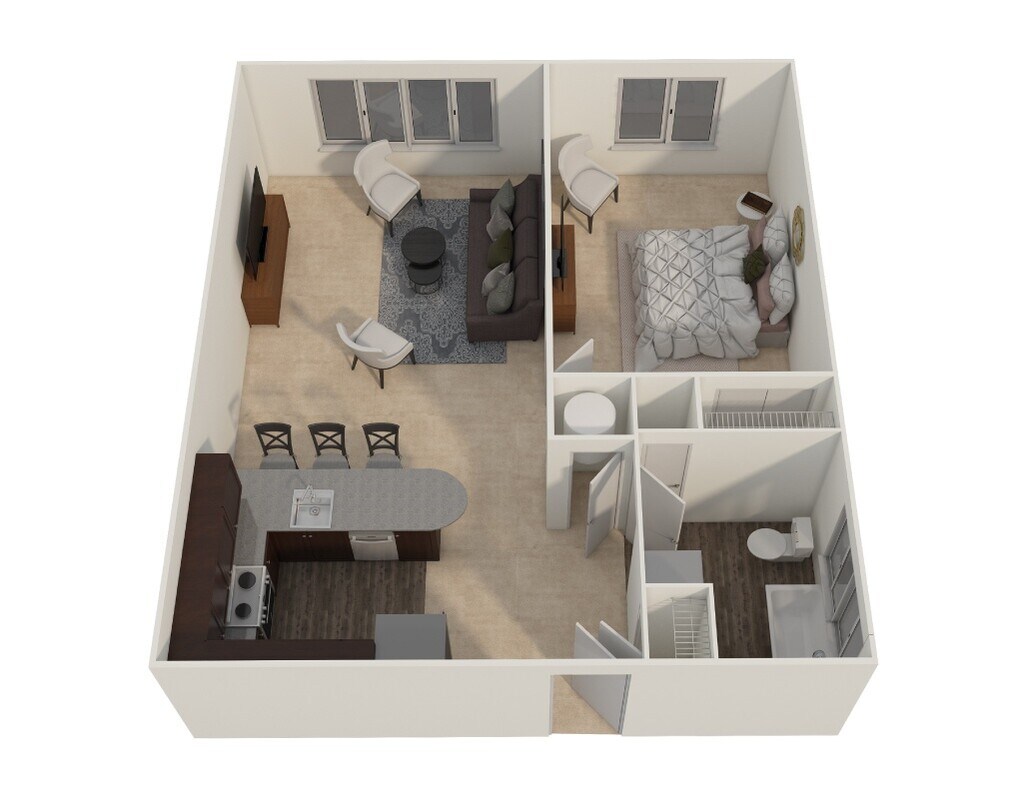 1 Bed, 1 Bath, 590 sq ftModel Gallery