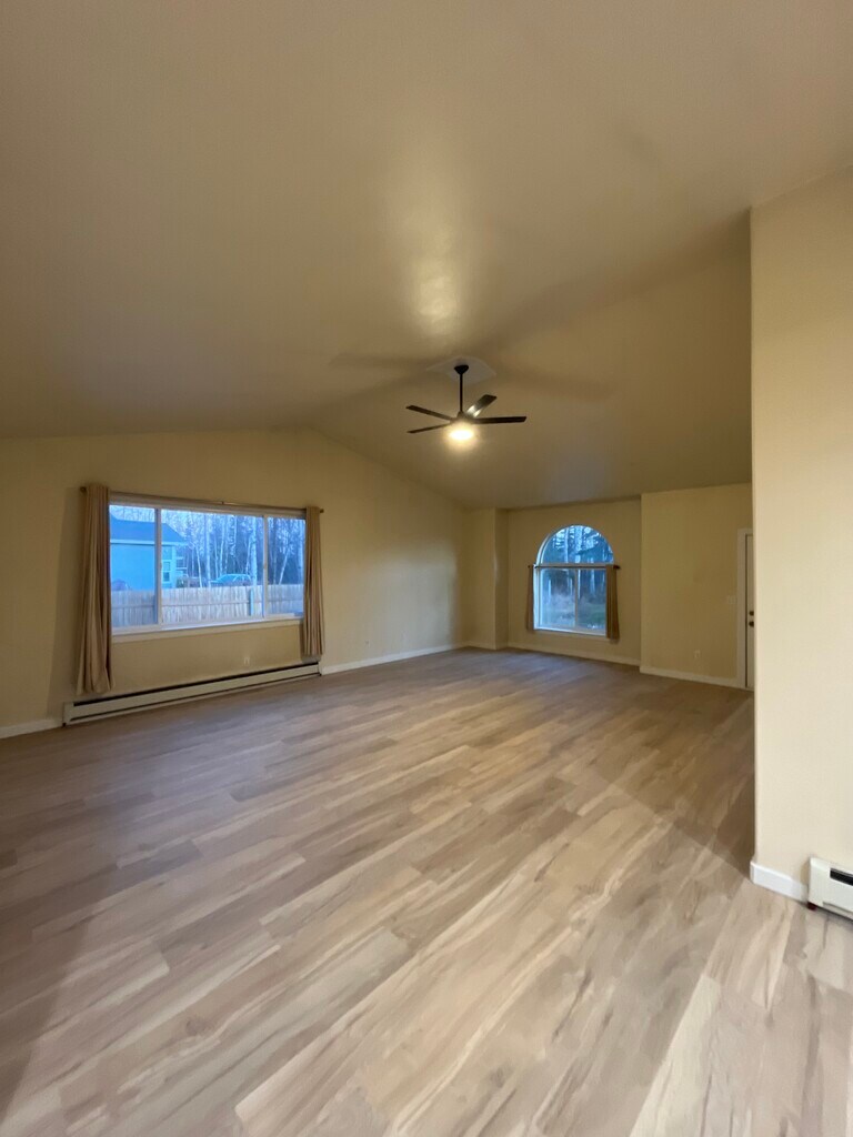 Recently updated 2 Bed 2 Bath duplex for rent! LVP flooring throughout kitchen, living room, and bathrooms. Carpet in both bedrooms/closets. New LED lighting fixtures. Stainless steel appliances. One car garage with washer and dryer and a garage fridge/chest freezer. Large Yard and long driveway. Lots of trailer/toy parking! Tenant pays Gas and Electric. Snow removal, trash, water, and sewer included. Located In Wasilla down Schrock 1950$ per month, with a 1950$ security deposit. Dogs allowed on Approval. 50$ pet fee per month. 1 year, 6 month, or month to month lease options. No Smoking. Available October 1st