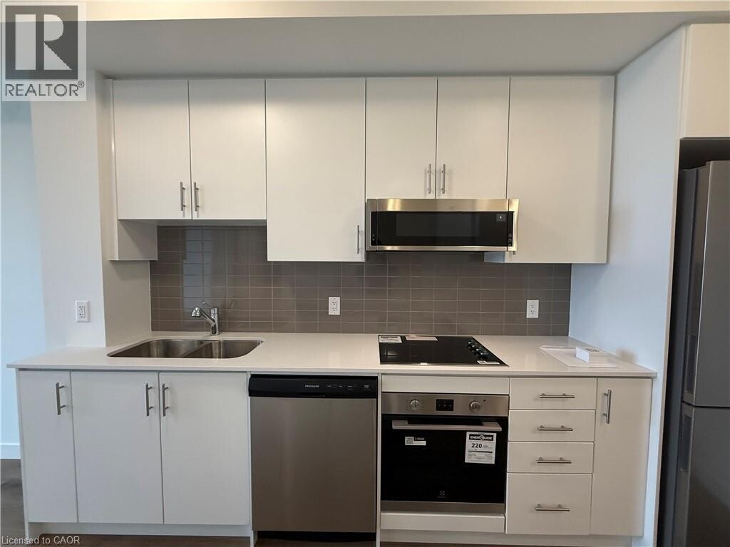 Brand new 1 bedroom + den condo in the heart of Stoney Creek,offering exceptional convenience with quick access to the QEW and just minutes from the new Confederation GO Station. This bright and spacious unit features over 700 sq ft of modern living space,highlighted by floor-to-ceiling windows,abundant natural light,and a private balcony. The functional layout includes a full-sized bedroom,a versatile den ideal for a home office,upgraded vinyl plank flooring throughout,and in-suite laundry. The kitchen is enhanced with a large island,full-height cabinetry,and quartz countertops—also featured in the bathroom for a cohesive,upscale feel. This suite includes underground parking,a locker for additional storage,and internet is included for added value. Located in a newly built smart-tech condominium with keyless entry and premium amenities: a 6th-floor rooftop terrace with BBQs,media lounge,club room with kitchen,art gallery,and a pet spa. Perfect for those seeking contemporary living in a growing Stoney Creek community,close to transit,shopping,restaurants,parks,and major commuter routes. (id:52069) ID#: 2202473