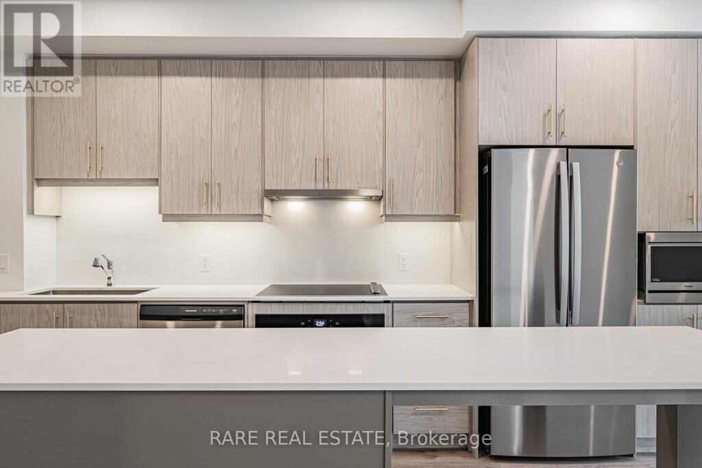 Stunning 1 Bed + Den - Rare Large Terrace - Stoney Creek Welcome to elevated condo living in the heart of Stoney Creek. This beautifully upgraded 1-bedroom + den unit is a true standout in the building,offering a rare oversized private terrace - perfect for entertaining,morning coffee,or simply soaking in the fresh air. From the moment you step inside,the thoughtful upgrades are impossible to miss. The chef-inspired kitchen has been meticulously enhanced with 100cm upper cabinets,quartz countertops and matching backsplash,under-cabinet lighting,and a generous 4-foot kitchen island extension complete with a dedicated pot and pan drawer. A built-in pantry closet with integrated microwave keeps the space sleek and functional,while the 30" cooktop,wall oven,hood fan,and 33" fridge round out a kitchen that truly has it all - including a water line to the fridge for added convenience. Stylish vinyl flooring flows throughout the open-concept layout,complemented by 15 pot lights that bathe every room in warm,modern light. The den offers a versatile bonus space - ideal as a home office,nursery,or guest room. Beautifully upgraded Bathroom ; Parking & Locker Included (id:52069) ID#: 2014404