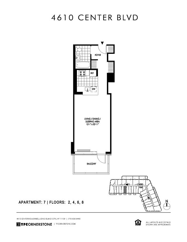 TFC’s sixth residential building on the Long Island City waterfront, 4610 Center Blvd features spacious studio, one-, two-, and three-bedroom apartments, sprawling outdoor space, breathtaking views, and a family-friendly community. Designed by the award-winning architecture firm Arquitectonica, the 26-story building is perhaps best-known for the sleek, modern design that curves around LIC’s famous PepsiCo sign. Amenity spaces, including a club room, co-working space, private garden and landscaped terraces, and the building’s lobby and club were designed by internationally renowned design firm, Yabu Pushelberg. Residents also enjoy the convenience of a private backyard garden and a-state-of-the-art fitness center. The dynamic, multi-purpose waterfront surrounding 4610 Center Blvd provides more than an iconic view: With 12 acres of green parks, a beautiful esplanade, an outdoor sports park, and a K-8 school around the corner, there’s plenty to do in the neighborhood. Now Offering Deposit-Free Renting with Rhino. Please Contact the Leasing Office for Details, as Restrictions May Apply to All Available Incentives. Our Leasing Office Staff will be working remotely until further notice. Please Contact Us by Phone or Email with All Questions about Availability. Video Tours are Available Upon Request. All imagery displayed here is for illustrative purposes only. Exact flooring, finishes, furnishings, views, or layouts may vary slightly throughout the building as improvements are completed over time.
