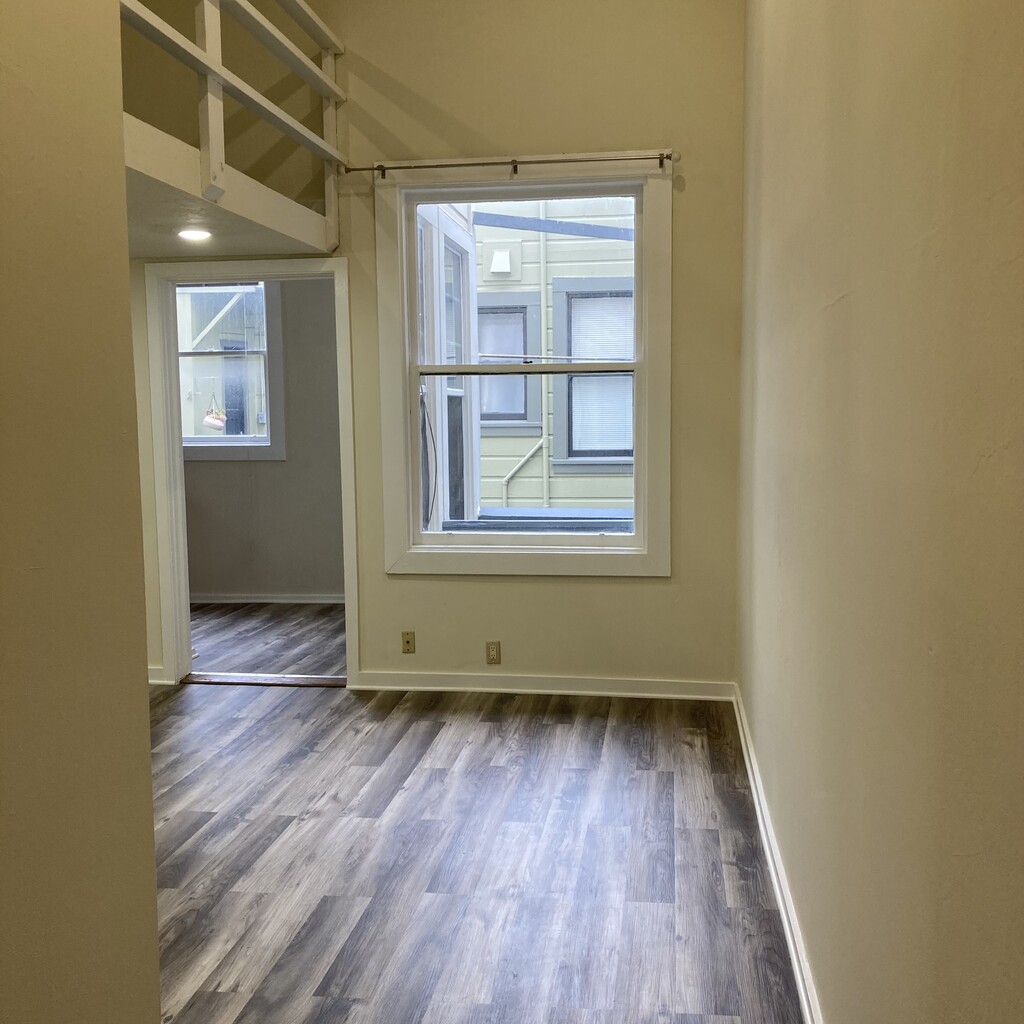 9 unit family owned building Beautiful hardwood floors apartment on second floor studio loft Lots of windows with natural light Kitchen has gas range, refrigerator and garbage disposal (cabinet space for storage) Bathroom has shower stall only Coin operated washer and dryer One year lease agreement Most pets okay Apartment available now If you would like to apply please call.