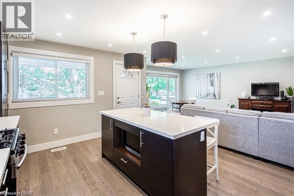 Executive style 3-bedroom bungalow main floor rental. This newly renovated open concept style home features a gourmet kitchen with large island,stainless steel appliances (gas stove) & spacious living room and family room,all with tons of natural light. New washer/dryer. Upgraded 5pc bathroom. 2 car driveway and garage. Located on a very quiet street in a family friendly neighborhood,minutes walk from Mohawk College,grocery stores,restaurants,entertainment,public transportation,and so much more. Tenant responsible for 70% of utility cost. Credit report,rental application and references required. (id:52069) ID#: 1803927