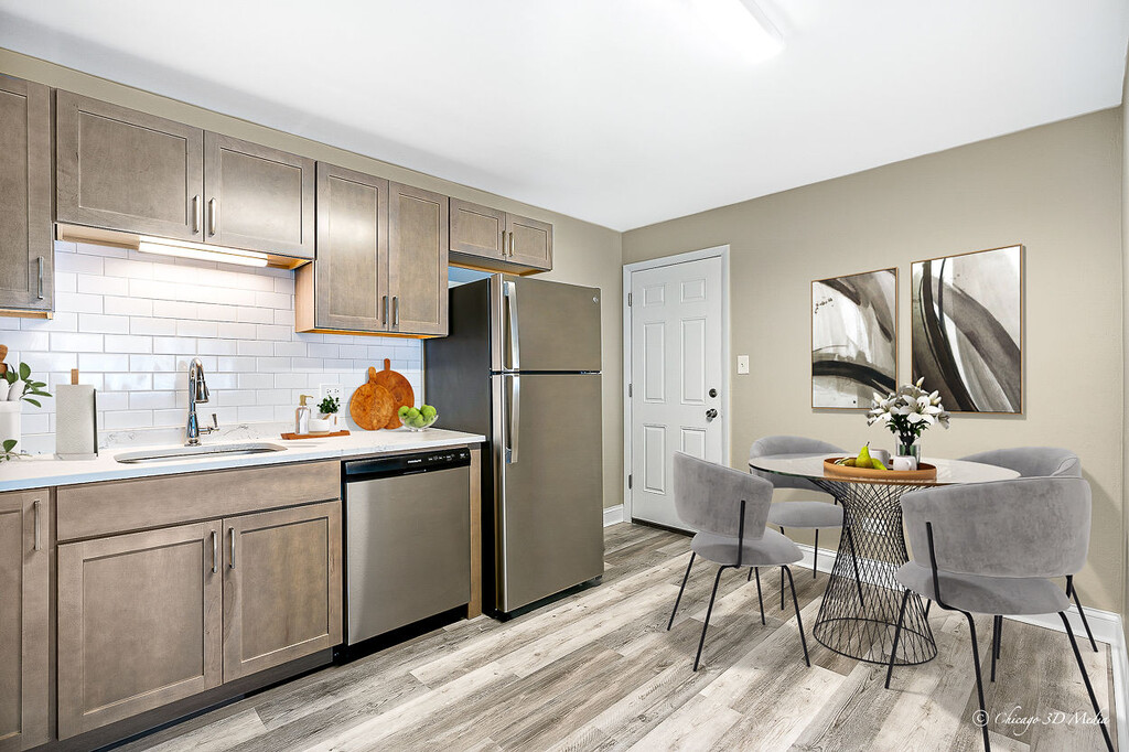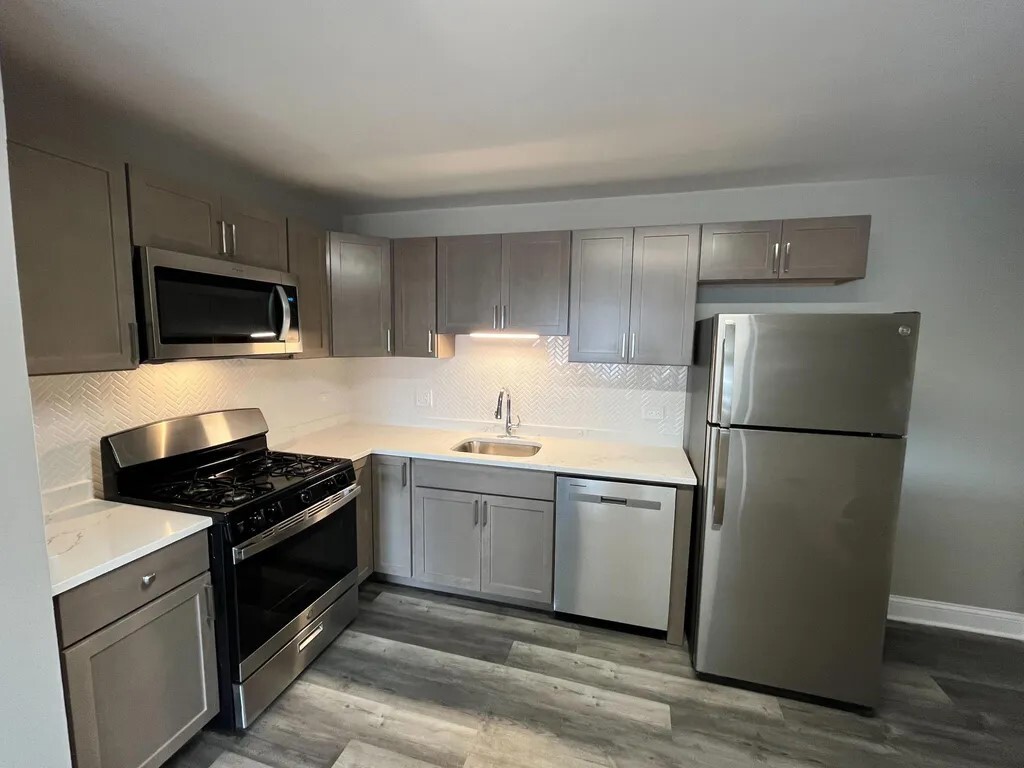 Spectacular quartz countertop, and high quality cabinetry. Updated bathroom with tub. Laundry in the building. This apartment is in a Central location for easy commute, allows Mins to Exprswy and O'Hare Airport. Close to all major stores, easy street parking. Close to Harlem Blue line station. Tenant pays for all utilities.